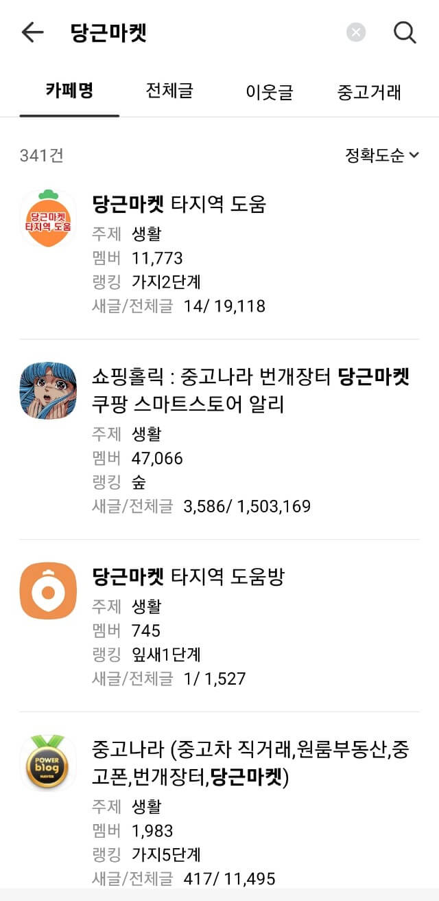 ▶ 네이버카페에 들어가서 '당근'을 치고 검색하면 당근마켓의 타 지역 도움 카페 등이 있습니다. 가입 후 서로 인중 품앗이를 하면 가능합니다.