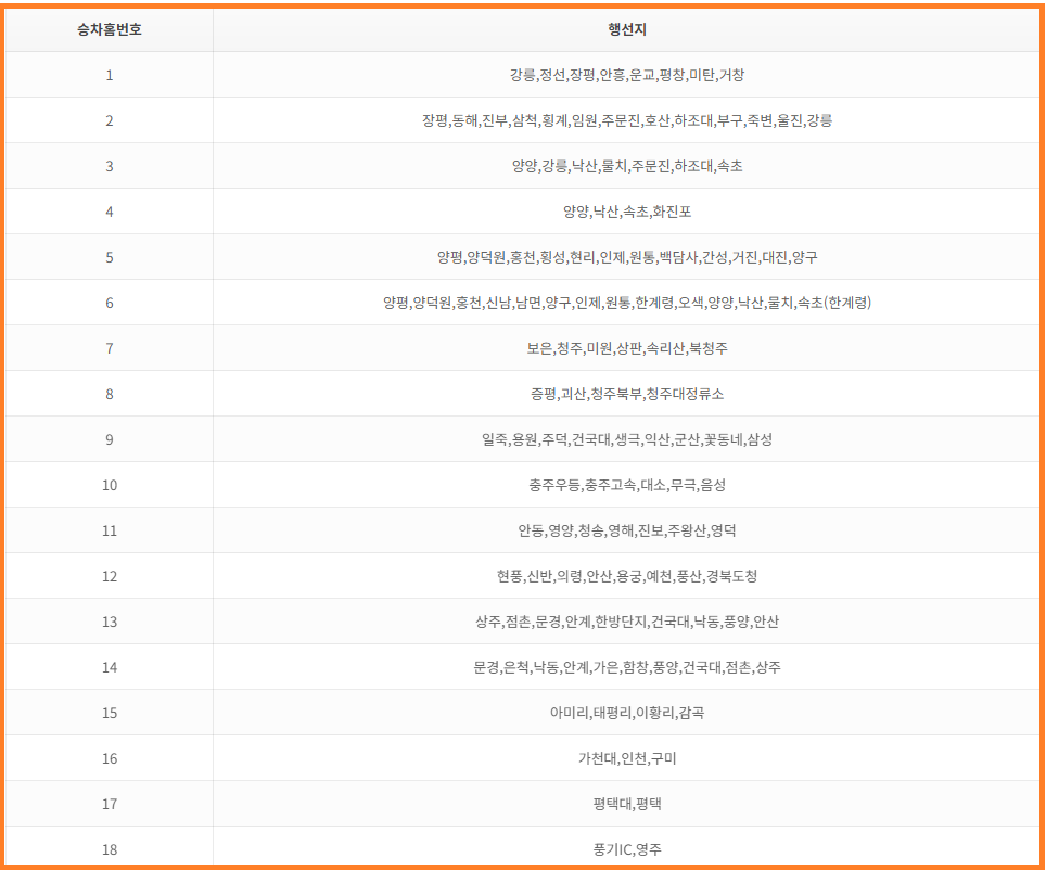 동서울 고속버스터미널의 승차홈 번호별 도착지와 터미널 내 주차장 위치입니다. 잘 보시고 헤매는 일이 없도록 하시기 바랍니다.