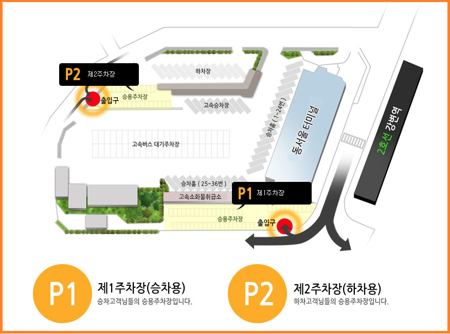 동서울고속버스터미널 승차홈 및 주차장 이용방법