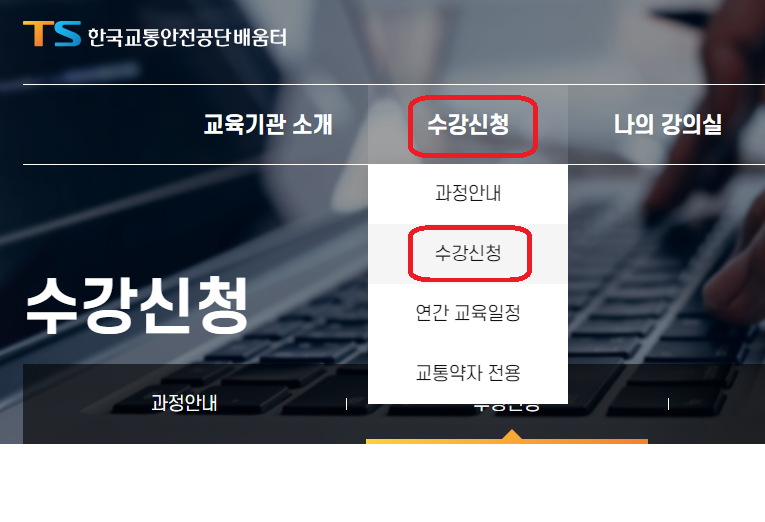 ▶ 1) 한국교통안전공단 배움터 홈페이지에 접속합니다.