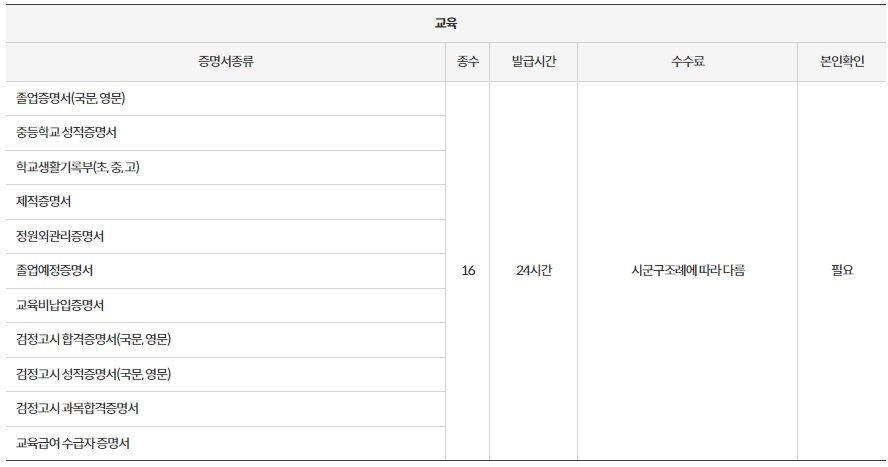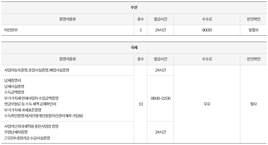 ▶ 무인민원발급기 발급종수 및 발급가능시간은 현장여건 및 운영상황과 발급수수료는 달라질 수 있으니 설치장소의 전화번호로 문의 후 이용하시기 바랍니다.