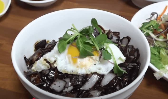 계란후라이가 올라간 간짜장이 특이하면서 맛있게 보입니다.