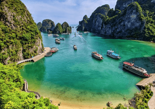 ● 하롱베이 (Halong Bay): 하노이에서 버스로 3시간 거리로, 크루즈를 타고 환상적인 석회암 섬을 감상하세요.