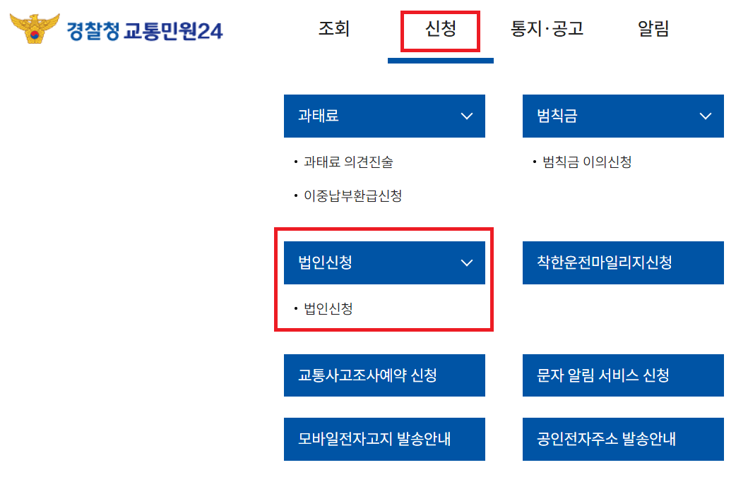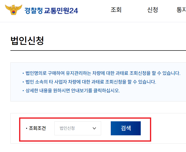 ▶ 관할경찰서에서 제출된 서류를 확인하고 민원완료 처리를 해주면 그 이후부터 법인 과태료 확인이 가능합니다.