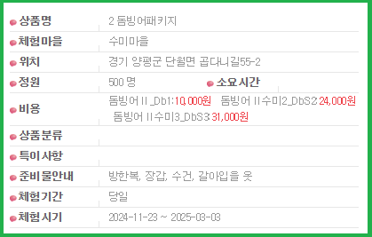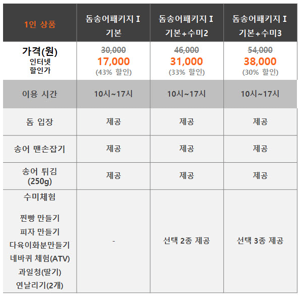● 내용 : 돔입장, 송어 맨손으로 잡기, 송어튀김(250g) 제공