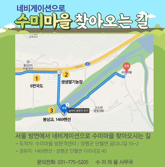 ● 행사장소 : 수미마을 (경기도 양평군 단월면 곱다니길 55-2 수미마을방문객센터