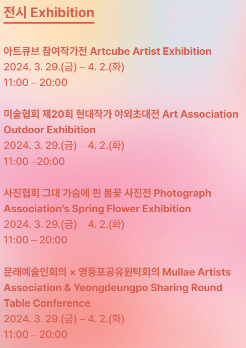 - 2024. 3. 29 ~ 4. 2. 11:00 ~ 20:00