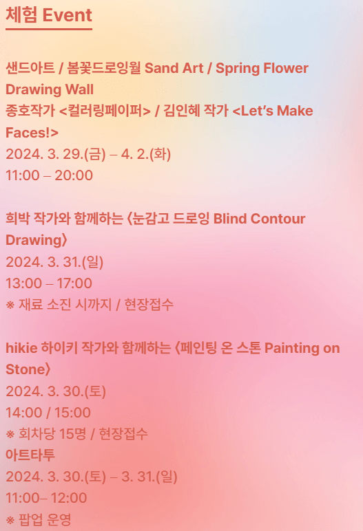 - 2024. 3. 29(금) ~ 4. 2(화) 11:00 ~ 20:00