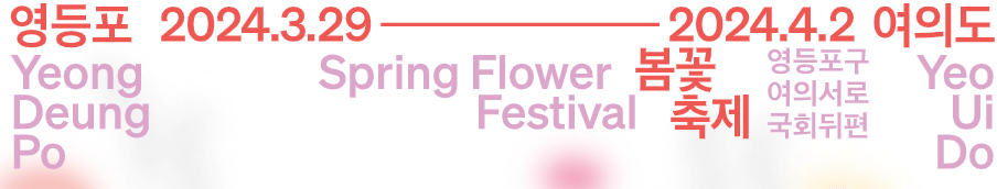 서울의 대표적인 축제인 여의도 벚꽃축제는 제18회 영등포 여의도봄꽃축제(봄꽃소풍)이라는 테마로 총 5일간 진행됩니다.