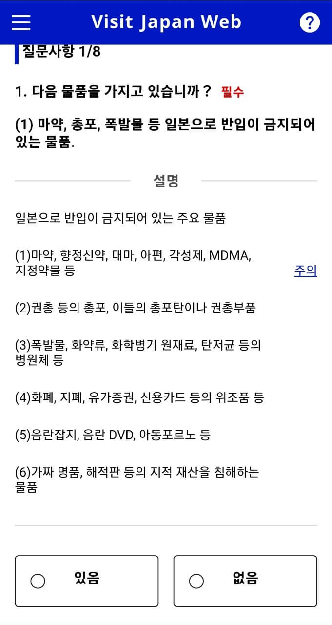 1. 일본 입국신고서는 비짓재팬 웹서비스를 통해서 미리 작성해 놓는다.