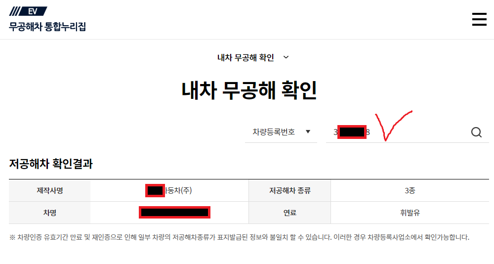 (3) 차량등록번호를 선택하고 옆에 차량 번호만 입력하면 바로 저공해차 종류가 나옵니다. 요즘에는 일반 승용자동차도 저공해차 3종이 많으므로 차량등록 시 꼭 저공해차량 스티커를 발부받으셔서 혜택 받으시기 바랍니다.