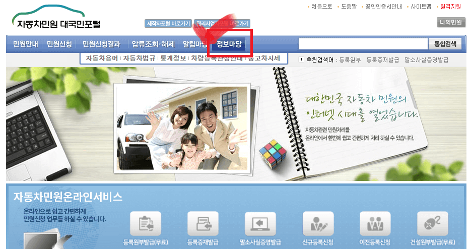 (1) 모든 자동차 민원 업무를 볼 수 있는 '자동차민원 대국민 포털' 검색 후 사이트에 접속합니다.