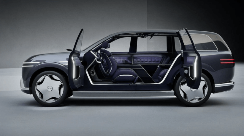 ▶ 네오룬의 디자인은 큰 틀에서 풀사이즈의 전통 SUV형태를 띠며, 브랜드 고유의 퀴드 램프와 크레스트 그릴을 표현한 라이팅을 통해 제네시스 브랜드의 아이덴티티를 이어간 모습입니다.