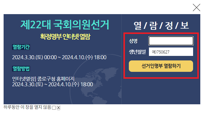 ▶ 선거일 - 2024. 4. 10 (수) 06:00 ~ 18:00