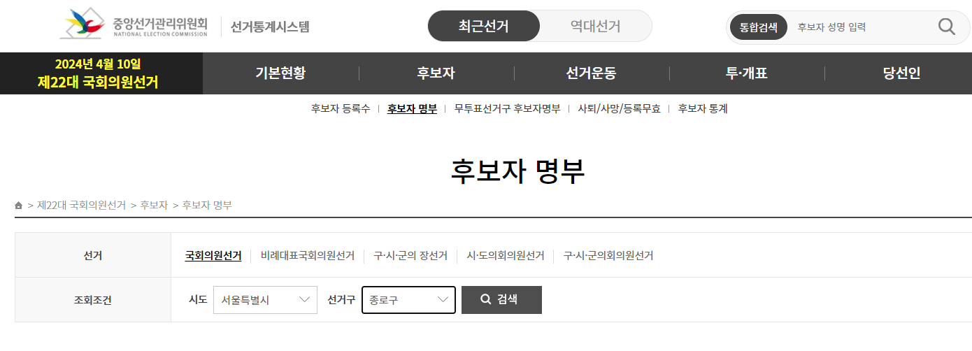 ▶ 선거명 - 제22대 국회의원선거