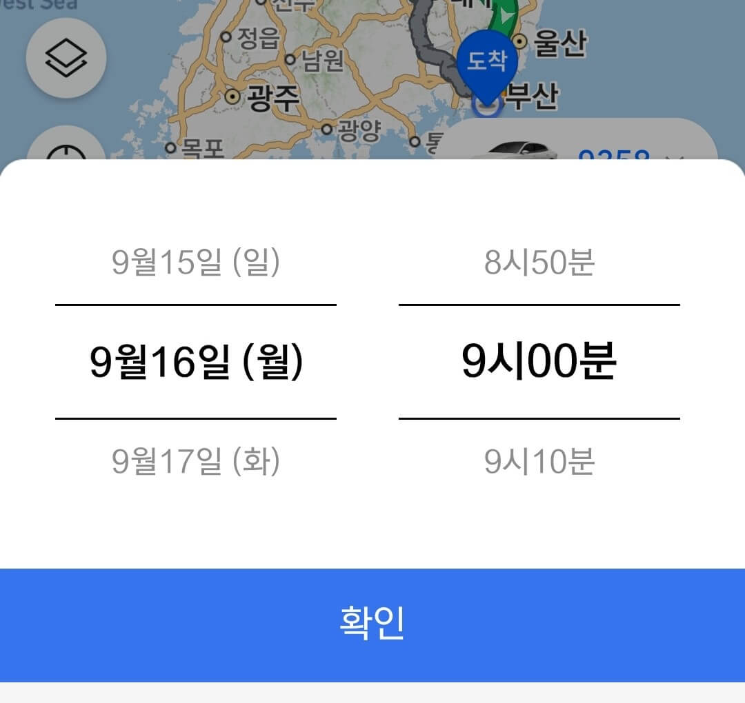 3. 원하는 날짜 시간을 입력하면 예상 교통시간을 조회할 수 있다.