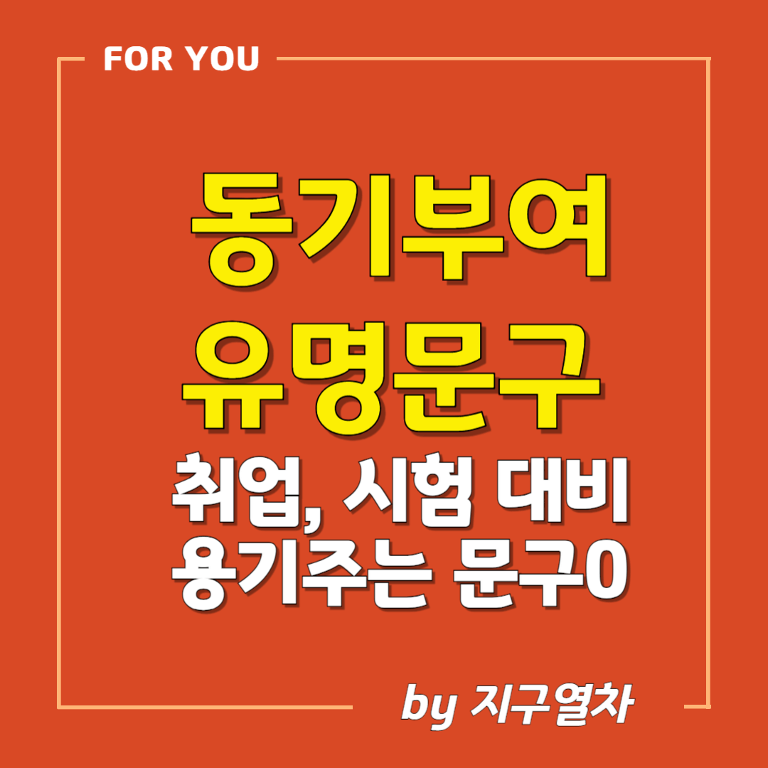 취업이나 각종 시험을 준비하고 있으면 마음이 약해질 때가 있습니다. 이럴 때 책상이나 핸드폰, 노트에 적어놓고 수시로 보면 힘이 나는 문구들이 있습니다. 이번 포스팅은 유명인이나 전해저 내려오는 힘이나는 동기부여 문구에 대해 알아보겠습니다.
