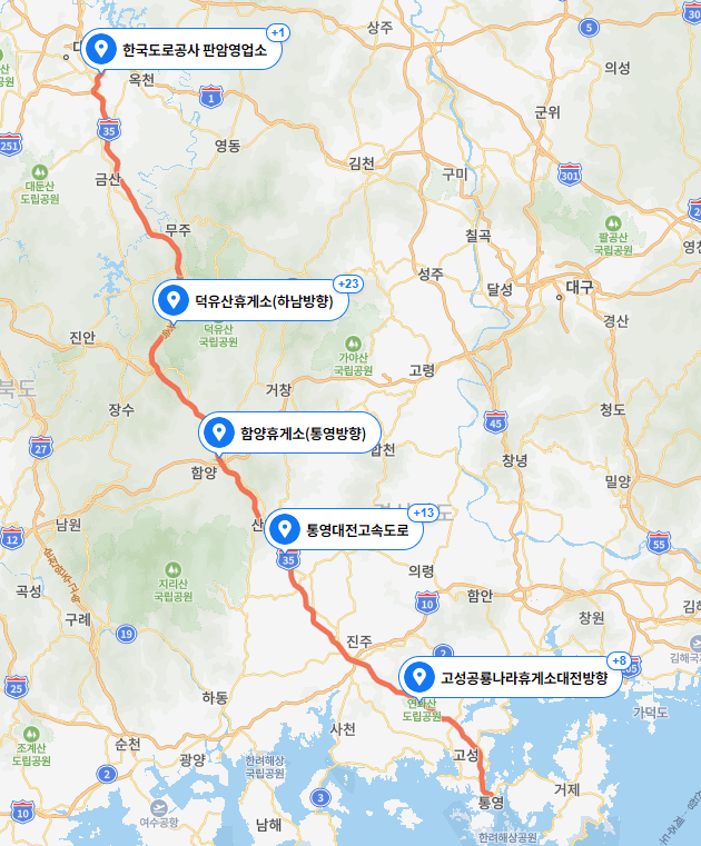 ▶ 통영대전고속도로는 경상남도 통영시에서 대전광역시 동구를 연결하는 고속도로로 총길이 215.3km이며 2005년에 전구간이 연결되었습니다.