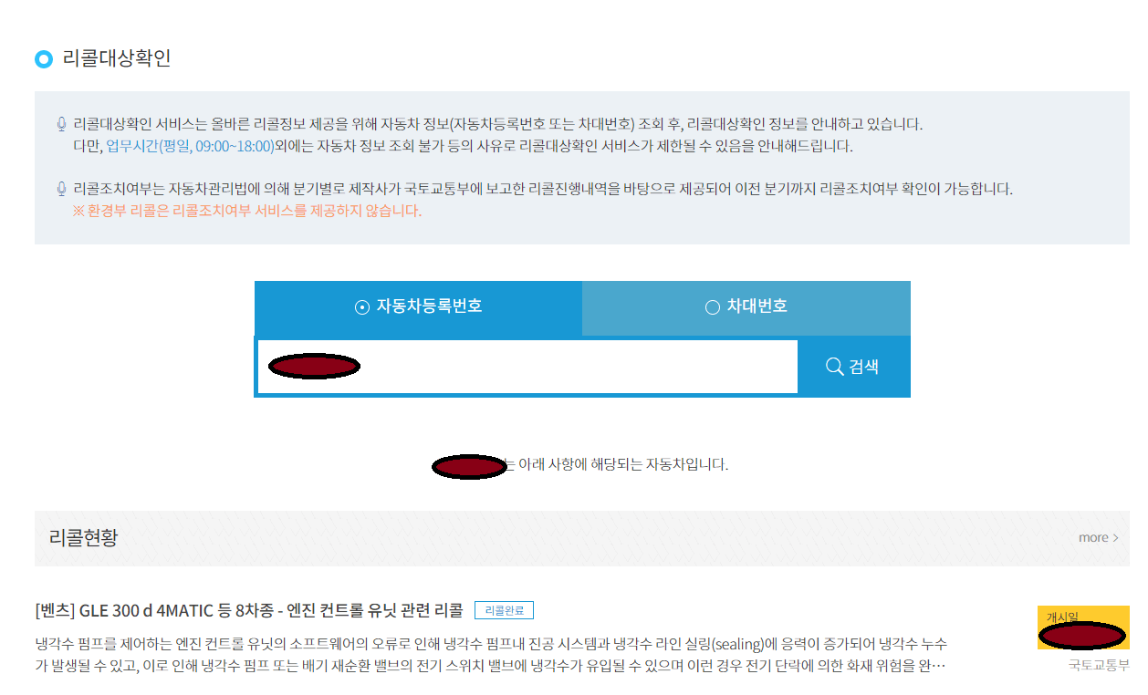 [ 내차 리콜대상여부 확인 하기]