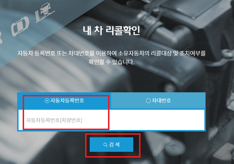 내 차 리콜대상여부 확인하기