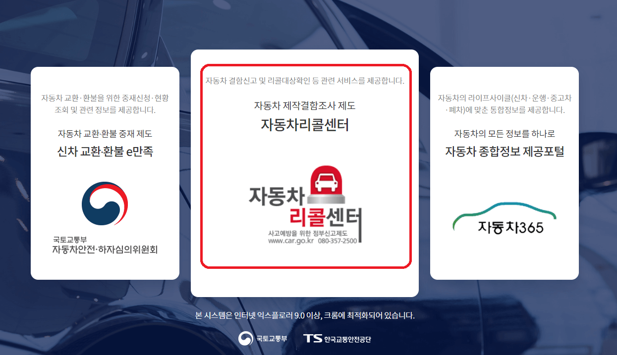 1. 자동차 리콜센터 접속