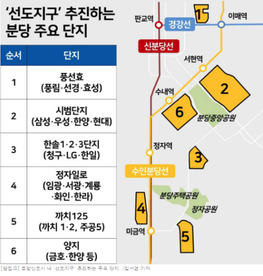 그럼 아래에 분당의 주요 선도지구 지정가능한 6개 단지에 대해 알아보겠습니다.