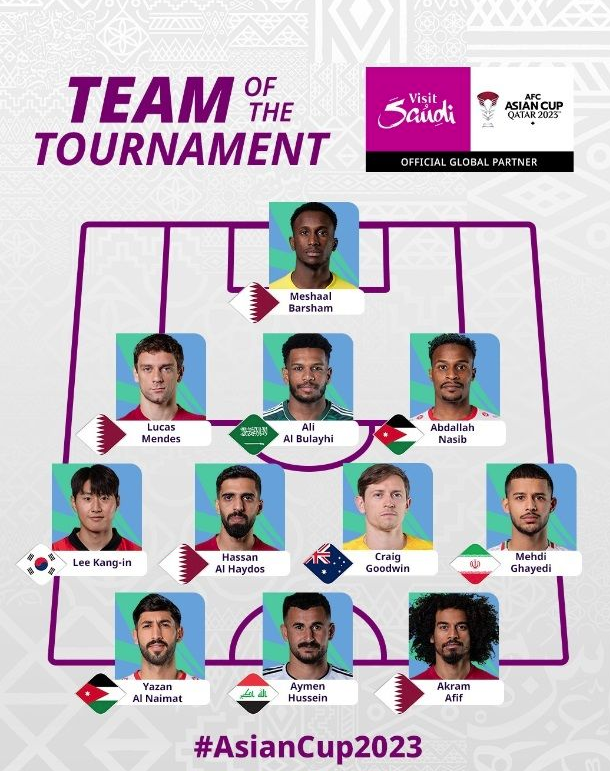 이에 대회 2연패를 달성한 카타르 선수가 4명으로 가장 많은 베스트 11 선수를 배출했고, 요르단 2명, 한국, 이라크, 이란, 사우디, 호주가 각각 1명씩 자리잡았습니다.