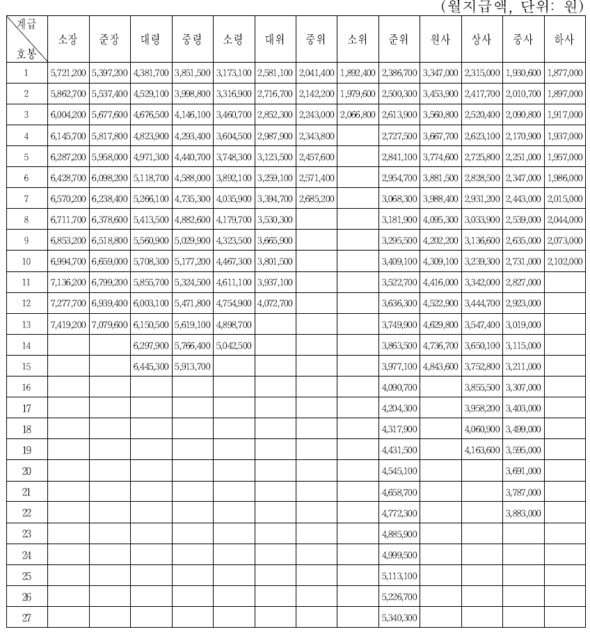 1. 군인 계급별 월급 개요 및 호봉표 보기