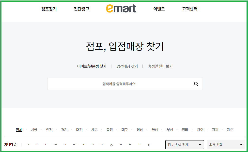 내 주변 이마트 점포 찾기는 아래에서 검색해 보실 수 있습니다.
