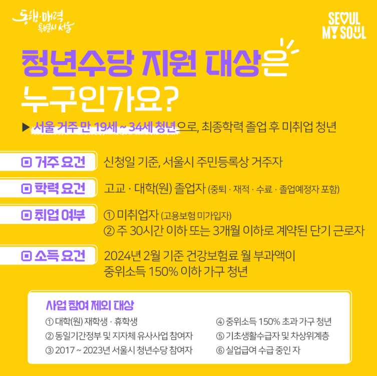 - 유사사업 참여 중인 자 (2024년 3월 1일부터 사업 참여 종료일까지), 서울시 「청년월세지원」 사업 참여자,