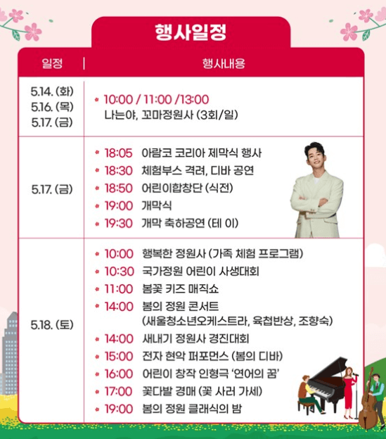 ▶ 행사기간내 일자별 시간별 행사내용은 아래와 같으니 골라서 행사에 참여하시면 좋을 것 같습니다.