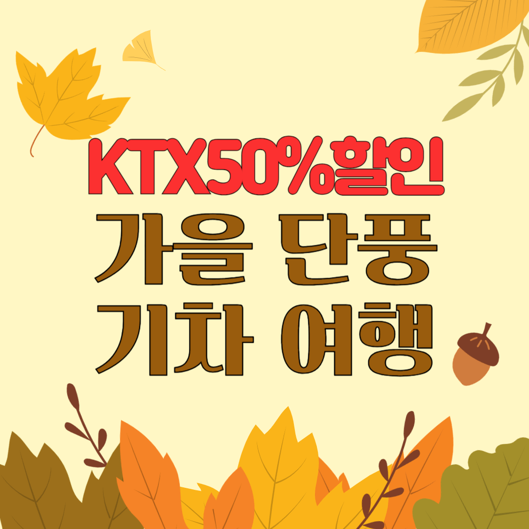 무더운 여름이 지나고 선선한 가을이 찾아왔습니다. 단풍이 물든 멋진 산과 들로의 여행을 계획하신다면 KTX 기차비용을 최대 50% 할인받고 여행을 떠나보시는 건 어떨까요? 이번 포스팅에서는 전국의 주요 관광지의 KTX비용 50% 할인방법에 대해 자세하게 알아보겠으니 가을 단풍 기차여행 떠나세요.
