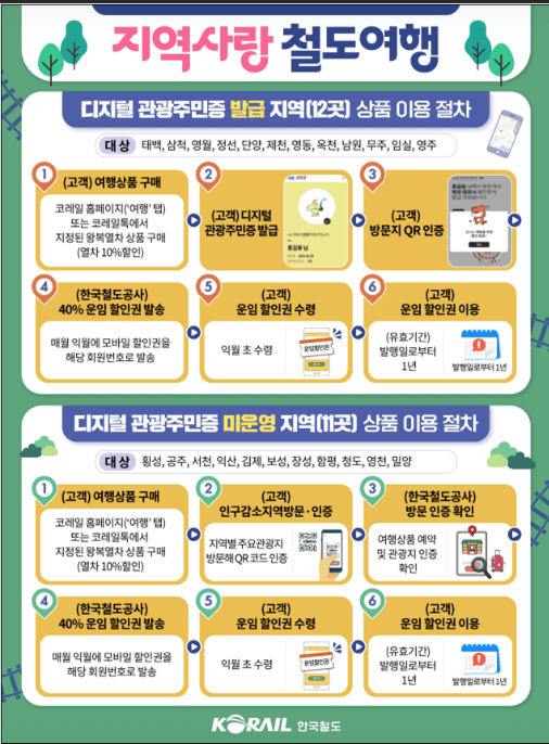 ▶ 코레일톡 앱을 통해 방문 인증을 완료해야 하며, 일부 지역의 상품 이용 절차가 상이하므로 사전 확인을 권장합니다.